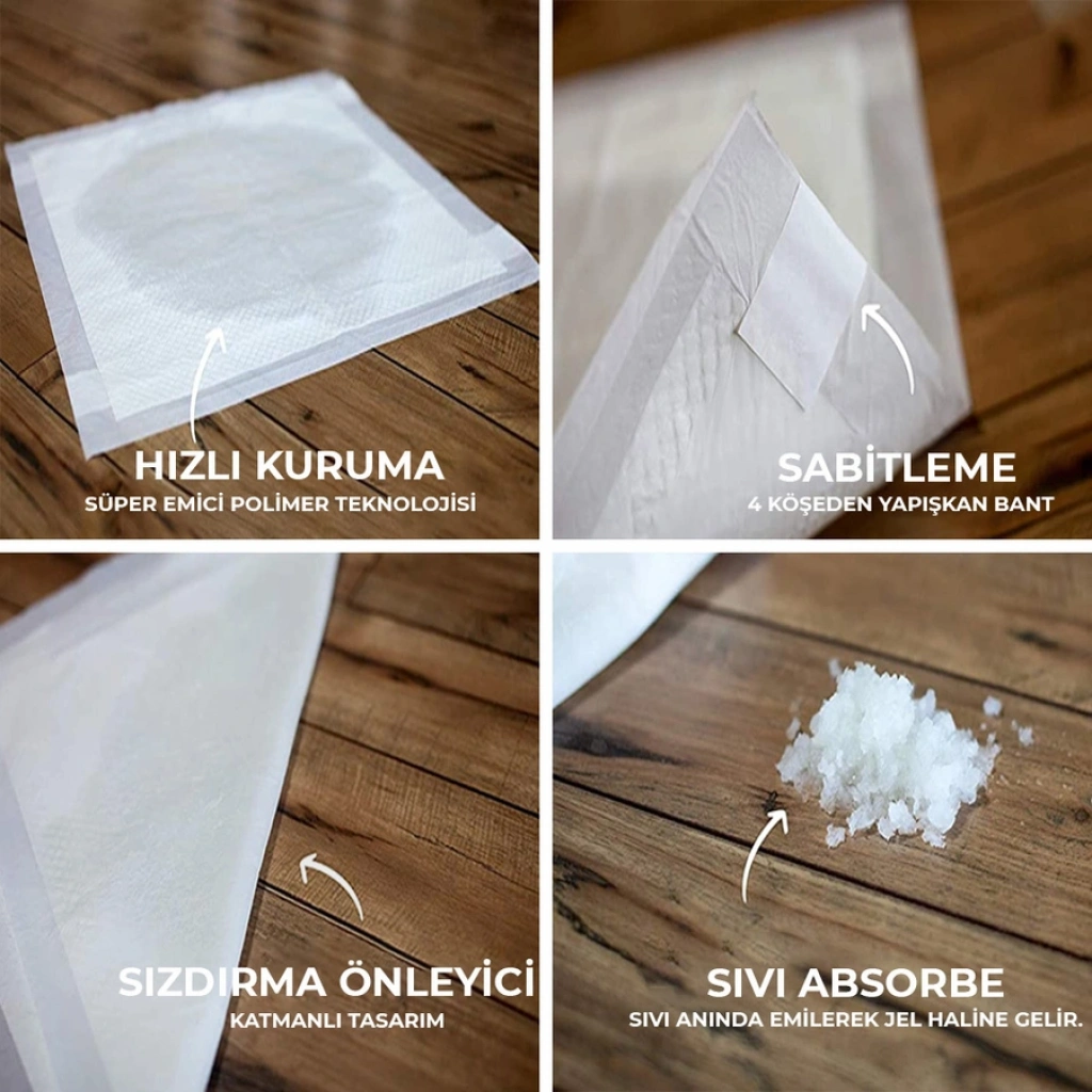 Yüksek Emici Katman: Sıvıyı hızla hapseden özel dokusu, sızıntıları önleyerek zemini kuru tutar.